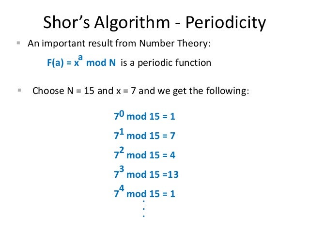 ↑ These simultaneous calculations giving multiple different remainders in Shor's algorithm need to be done by using (still-unrealized) quantum computer's fictional superposition ( this Step.6, this p.9, this p.2-last-paragraph ) or parallel worlds ( this last-paragraph, this 19-20th paragraphs, this last-paragraph ) in order to factor large numbers faster and break the current encryption key system ( this 10th-paragraph ).