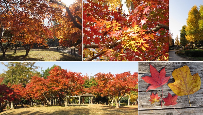園中央に「かえでの丘」があり、木々が真っ赤に染まっていました。