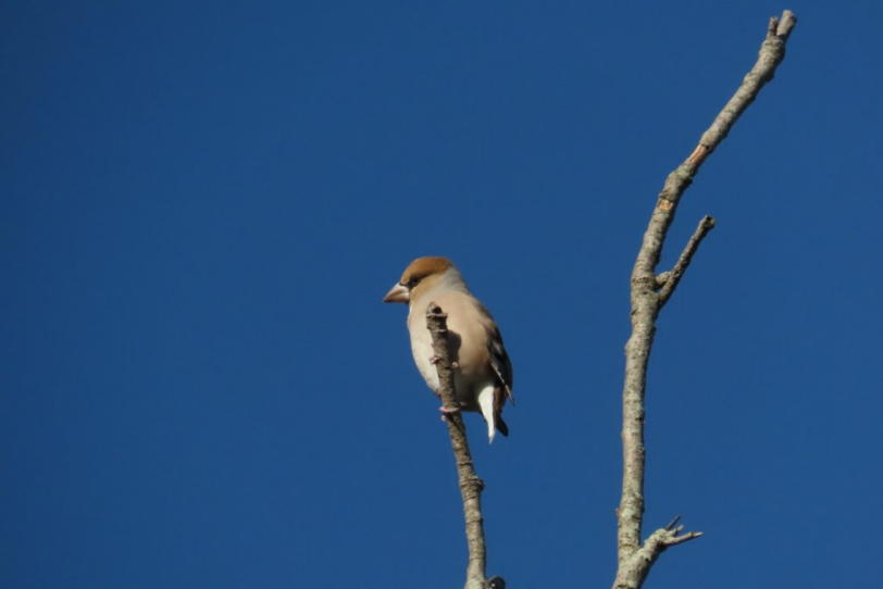 7時半から10時頃まで鳥見。バラの丸が丘ではシメ、カッパ池ではジョウビタキのメスなどを観察できました。他にはアオジ、ツグミ、ハイタカ、シジュウカラ、メジロ、コゲラ、コジュケイなど。