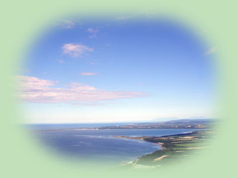 手前が芭露原野、サロマ湖の先はオホーツク海、彼方には知床連峰