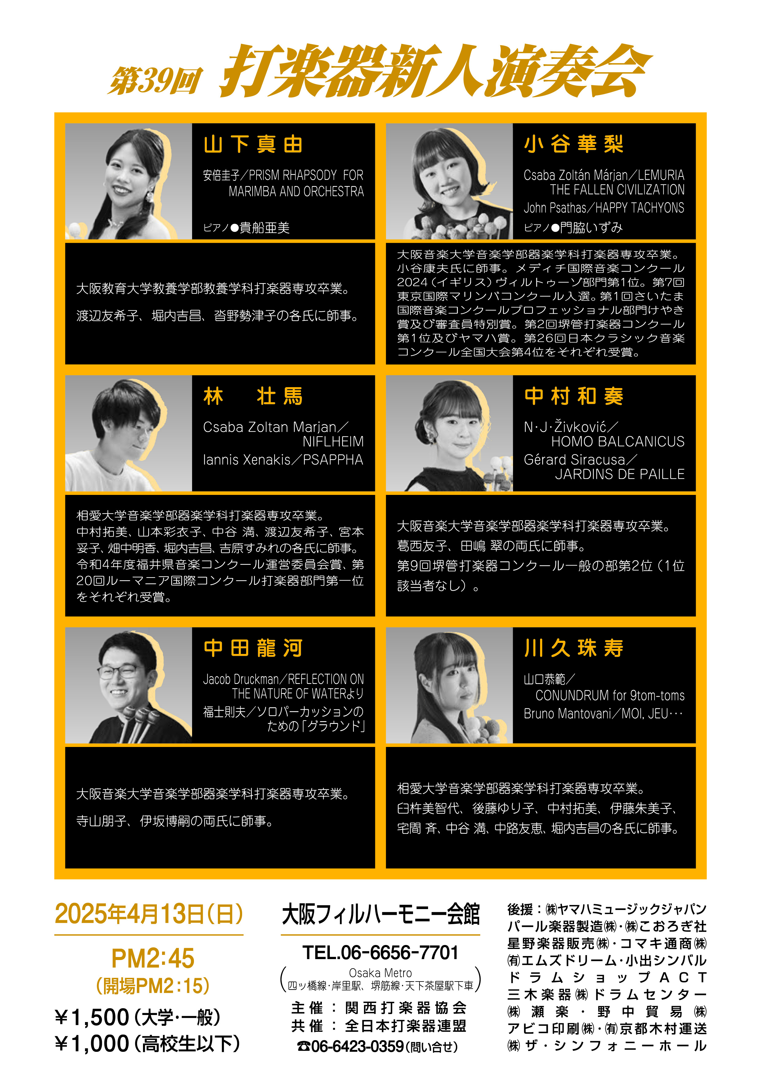 | 今年、 関西の音楽・芸術大学を卒業した新人によるコンサート! |