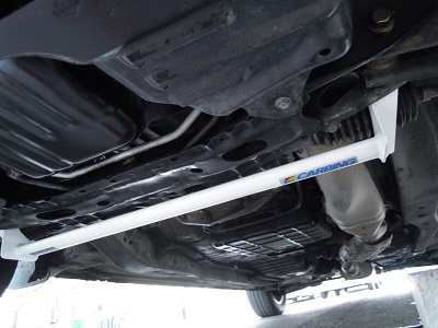 オクヤマ Lower Arm Bar Front type.Ⅰ ER34スカイライン用です。ポン付けできます。 これもフロントメンバーという、左右のサイドメンバーを繋ぐ丈夫な橋に平行して、 さらに橋を架けるという、一体何の意味があるのかと思ってしまうものですが取り付けました。 走ってみると効果は確かに感じられ、フロア振動の低減、ステアリング応答性の向上を認めます。 ガレージジャッキが掛けにくくなりました。 それから、結構下に突出しているので車高が低い人は要注意かもしれません。 車軸に近い位置なので、ノーマル車高であれば気にすることは何もありませんが。 |