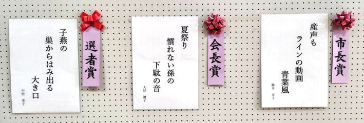 第25回交野市星友クラブ俳句大会は14:00開場、14:30開会で、ゆうゆうセンター4階多目的ホールにおいて、選者:堀江信彦先生で開催されました。 投句は自由題2句、詳しくは広報7月号16ページ左中断に掲載されていました。 締切日8月17日まで市星連事務局必着でした。 今年度の投句は31名62句で、市長賞、会長賞、選者賞、特選、入選は写真のとおりでした。 大会次第・62句はこの項をクリックするとご覧になれます。 |