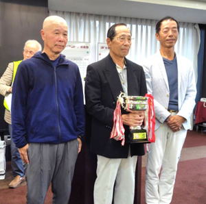 ![]() 16レーンで競技 2位:森本氏 優勝:江端氏 3位:坂元さん |