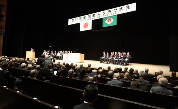 第54回全国老人クラブ大会は、二日間にわたり茨城県水戸市民会館で開催されました。 「のばそう!健康寿命、担おう!地域づくりを」メインテーマとし、活動発表、講演・式典が行われました。 |