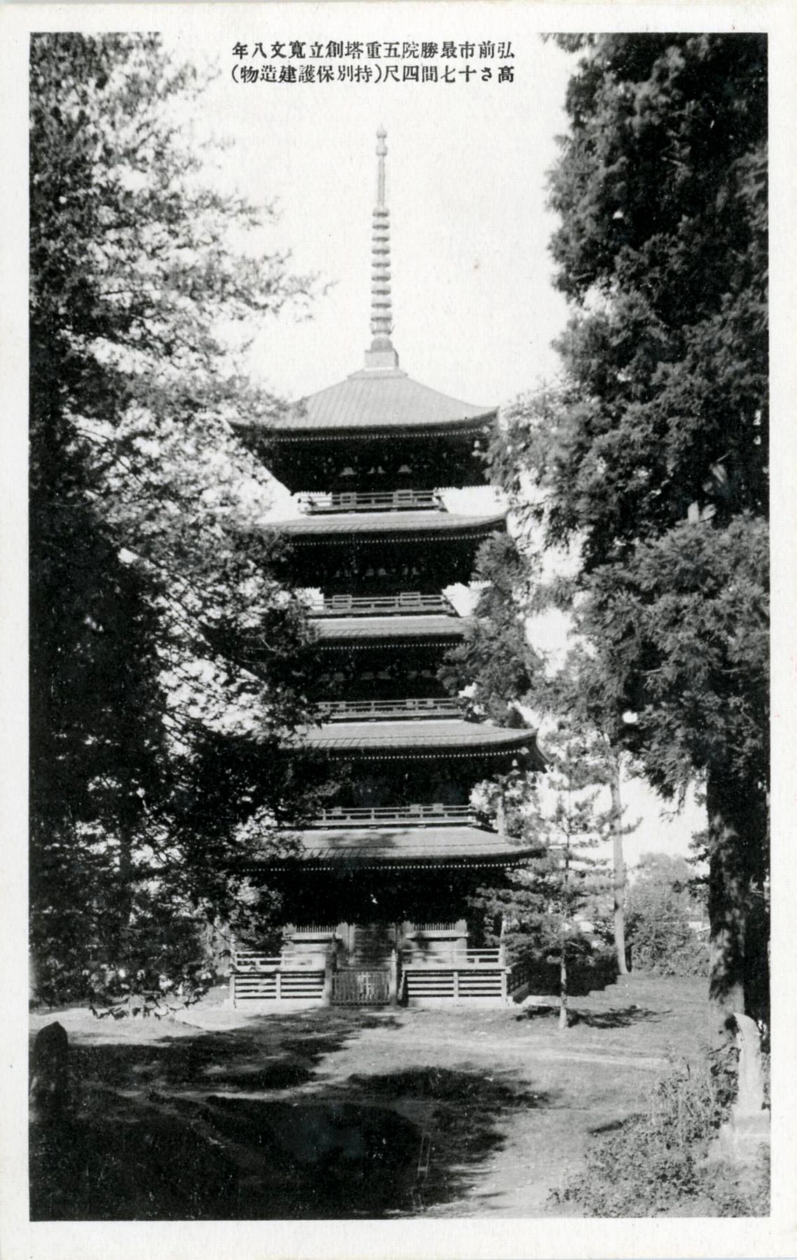 大圓寺五重塔絵葉書・青森県史14:(弘前名所)大圓寺五重塔(弘前市最勝院五重塔創立寛文八年/高さ十七間四尺(特別保護建造物)