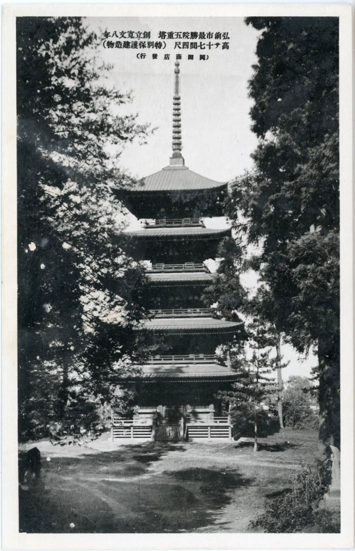 大圓寺五重塔絵葉書・青森県史13:弘前市最勝院五重塔創立寛文八年/高さ十七間四尺(特別保護建造物)/(関他商店發行)