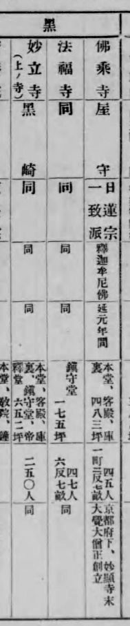 「浅口郡誌」中の「郡内各町村別・寺院調」の項で記載されている黒崎村の日蓮宗寺院は次の通りである。 黒崎村寺院調・日蓮宗3ヶ寺の明細