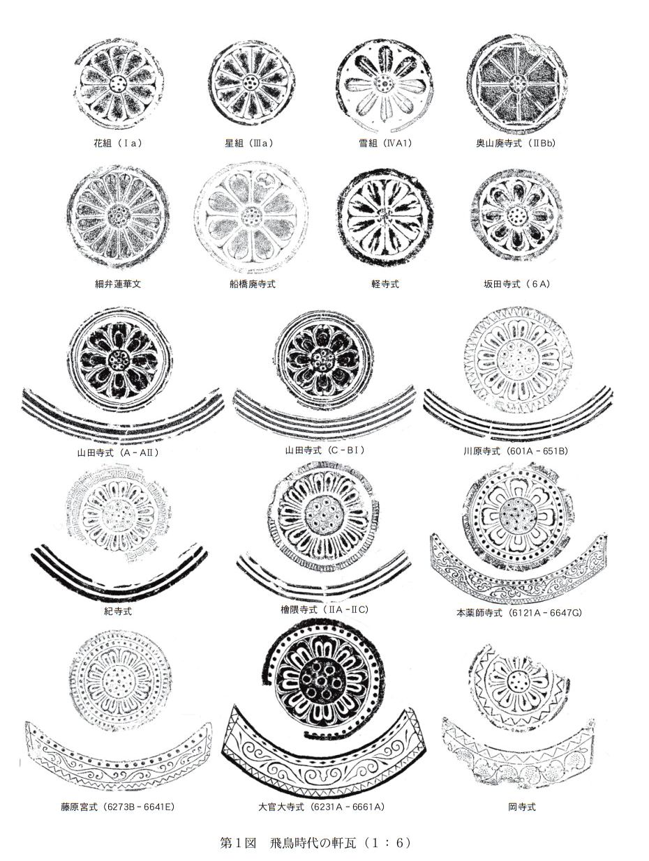 発掘調査では金堂所用瓦が、7世紀後半の檜隈寺式(幅線紋縁複弁蓮華紋軒丸瓦)・重孤紋軒平瓦、塔・講堂が藤原宮式軒丸瓦・右偏行唐草紋軒平瓦であることが判明している。