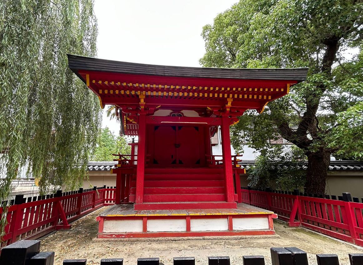 社殿の南東には平安時代後期の十三重石塔が塔跡の上に建てられている。