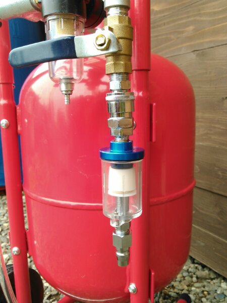![]() 水分除去装置と圧力メーターと レギュレーターが一体式になっています 写真と比べ形が予告無しに 改善改良される場合が御座います エアー入り口に1/4エアーホースカプラーと エアーストップバルブを取り付け済みです、 「両方共市販品には付いてません」 配管は写真と比べ予告なく改良 される場合が御座います ![]() 追加でオプションの「水抜き装置Aタイプ」も 取り付け出来て、ダブル水分除去が可能となります |