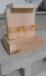 ノズル口径3.2ミリ、エ アー圧0.3Mpsで20セン チ離れて噴射です、噴 射パターンは直径約10 センチで、幅10センチの 上下を研磨するのに要 した時間は約2秒程度 です。ほんの一瞬でニ スが剥がれましたが下 地の木材も少し彫れて ザラザラです。 |