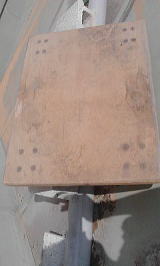 | ニスがたれて硬くなって いる幅10センチの板です |