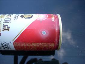 | 鉄製のコーヒー缶も10秒ほどで写真のように表面がはがれます。 ノズルとの距離は2cmです。 |
