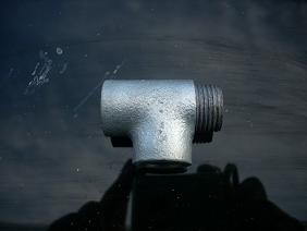 | 次にその左側の2cm幅をエコブラストEB-60でウェットブラストしました。 研磨の移動スピードは大手メーカー品と同じく1秒で約5ミリ程度の速さでして見ました。 ノズルから5cm離して研磨パターンは約2cm程度です。 アルミ製品は研磨が早く出来ますが鉄は時間がかかります。 かすかに境界線が見えますが肉眼ではガラスビーズ#80でのドライブラスト部分の方が 光沢があります。 これはガラスがコーティングされているためです。 コーティングが時間の経過と共にはがれるとウェット式に軍配が上がるでしょう。 大手メーカーの高級品のように高圧では無く、ノズルの数も少ないですが家庭用コンプレッ サーでも時間をかければこれだけの加工が出来ます。 |