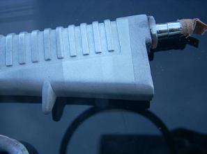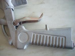 | アルミナ#120を使用している当社テスト機「SB-007」のブラストガンです。 表面はザラザラ状態です。 |