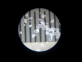 | 上記のテストを1時間繰り返した経過後の拡大写真です。 角が多少取れて小さくなっている物もあります。 |