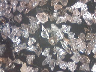 | 通販格安品 ガラスパウダー #50 新品 (新モース硬度 6.5) 一粒の一辺は長いほうで平均して0.13ミリ。 アルミナ#120と粒度も見た目も同じで、研磨力も同程度ですが研磨 した表面はツルツルしています。 |