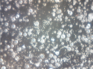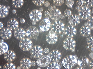 通販格安品 ガラスビーズ #200 新品 (新モース硬度 6.5) 芸術品ですね 使うのがもったいない。 一粒の直径は0.03ミリでした。 本来なら#200は約80ミクロン(0.08ミリ)ですがどうもインチキ商品 だったようです。 研磨には同粒度のアルミナより時間がかなりかかります。 |
