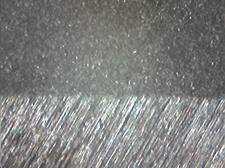 ![]() 上の写真の上半分がブラストした物 です。 下半分は素地のヘヤーライン仕上 げのままです。 |