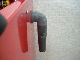 ドライ式で作業する場合は粉塵が 出て内部が良く見えません これを付けて掃除機で吸引します (色と形が違う場合が御座います) キャビネット右側面に33〜39oの 穴が開いていれば無加工で取り 付け出来ます。 |