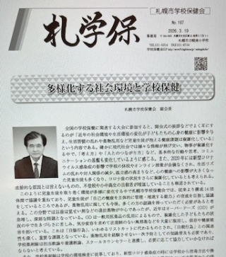 | 札幌市学校保健会会報誌「札学保167号」が令和8年3月19日に発行されます。巻頭言には学校薬剤師会の本会副会長が、「「多様化する社会環境と学校保健」と題して原稿を寄せています。多様化する社会環境が児童生徒に与える健康課題を複雑化している。特に薬物乱用の問題は以前と異なり、風邪薬などを過剰に摂取するオーバードーズが大きな問題になっている。学校薬剤師も担任や養護教諭、スクールカンセラーと連携して対応していきたいと述べています。(R8.3.14更新) |