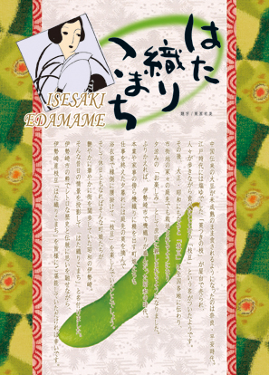 ★伊勢崎市で機織りが盛んだった昭和期。はつらつと働く機織り娘たちも仕事を終えた夕暮れには、庭先に実った枝豆を摘んでは茹でて、夕涼みのひと時を浴衣姿で楽しんだことでしょう。そんな昔日の情景をそのまま名称に投影したいと考えて「はた織りこまち」とネーミングしました。